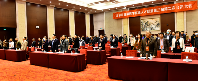 当天下午15点,北京常春藤医学高端人才联盟第三届第二次会员大会正式开始,全体起立奏唱国歌。