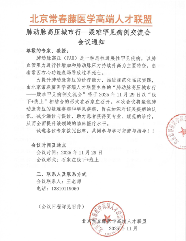 肺动脉高压城市行--疑难罕见病例交流会 会议通知